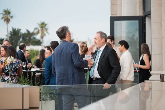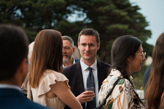 La noche comenzó con una recepción en la terraza exterior, seguida de las palabras de bienvenida de nuestro Director Jean-Charles Joachim, y de Matias Saiz Presidente de nuestra Cámara, quien realizó un balance de los hitos alcanzados durante 2025. A continuación, contamos con la intervención de la Embajadora de Francia en Uruguay, Virginie Bioteau, quien destacó la importancia del trabajo conjunto entre ambas instituciones.