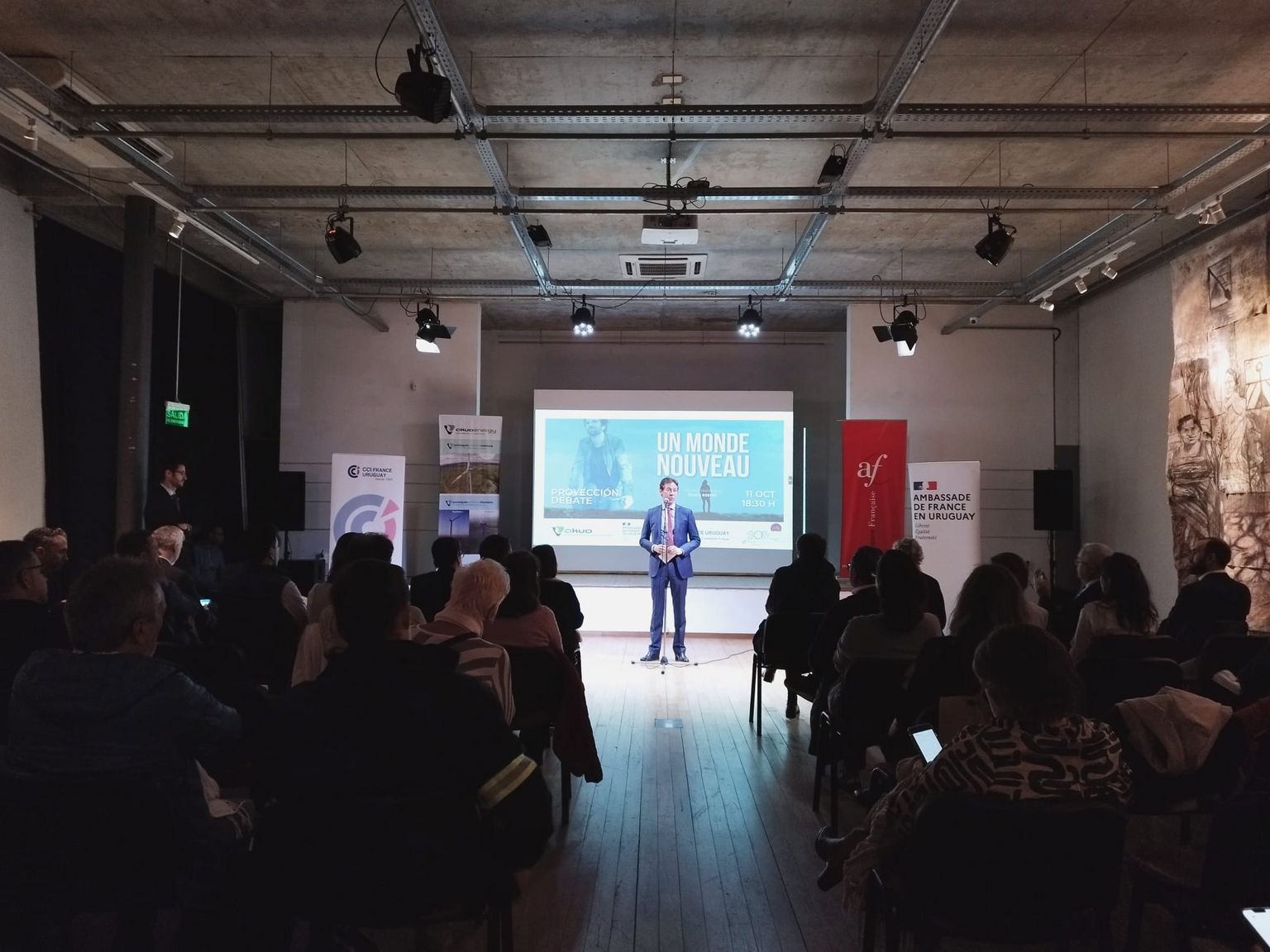 La Chambre de Commerce Française en Uruguay, l'Ambassade de France en Uruguay, l'Alliance Française et la entreprise française d'énergies renouvelables Akuo, ont participé à la projection du documentaire "Un Monde Nouveau", du cinéaste et activiste Cyril Dion.